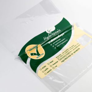 ถุงใส่ผัก Hydroponic ผักปลอดสาร ลูกค้าเลือกให้เนื้อถุง PP เนื่องจากต้องการความใส ตัวถุงมีการพับข้างเพื่อเพิ่มพื้นที่ในการใส่ผัก และมีการเจาะรูเพื่อระบายไอน้ำจากตัวผัก นอกจากนี้ลูกค้ายังได้เจาะหูหิ้วแบบเจาะ เพื่อให้สะดวกต่อผู้บริโภคในการถือ ในการพิมพ์ลูกค้านำถุงไปใส่ผักหลายชนิด จึงทำเป็นช่องตัวเลือก ให้ติ้กว่าเป็นผักชนิดไหน